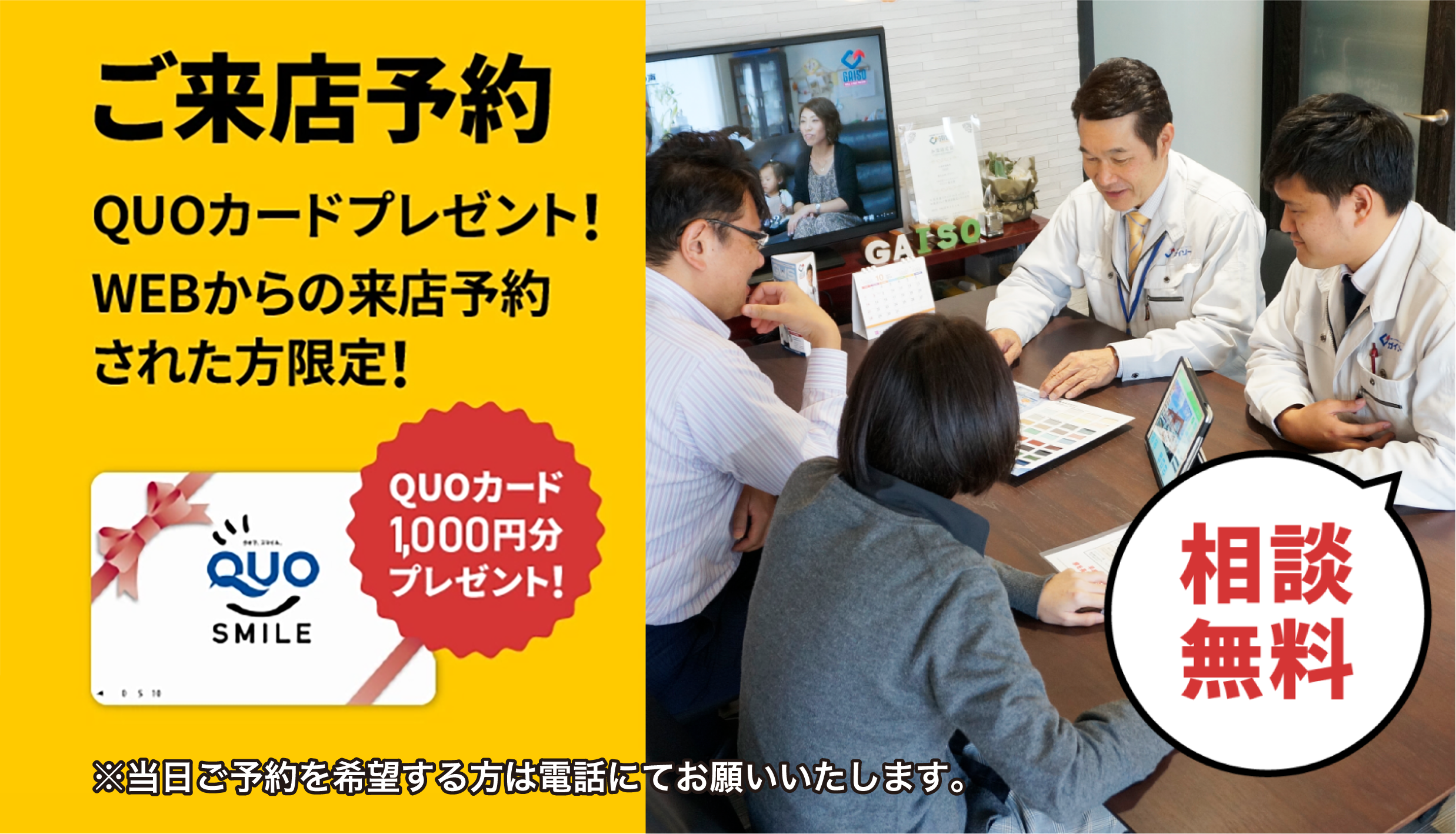 ガイソーでは定期訪問点検を実施しております。早期に不具合を発見することで、将来的な修繕費用を抑えることができます。また、工事内容に合わせて最大20年間の自社発行保証書をお渡ししております(一部補修工事を除く)。長期にわたってお住まいをサポートする体制を整えております。