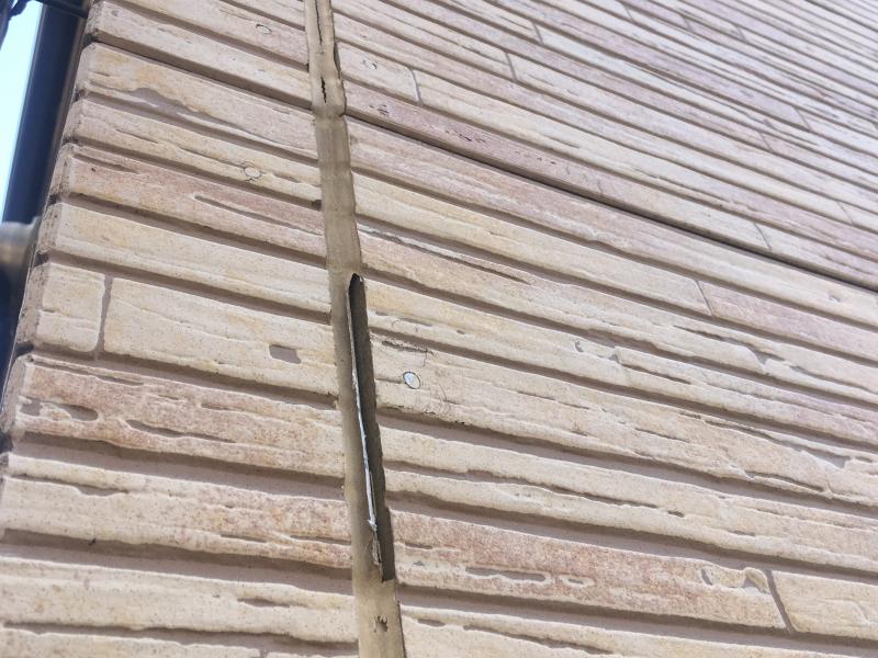 外壁材と外壁材とのつなぎ目=目地は防水のためにコーキング材を充填しています。このコーキング材は経年によりひび割れや剥がれが見られるようになります。ひび割れが見られるようになったら打ち替えの検討が必要です。