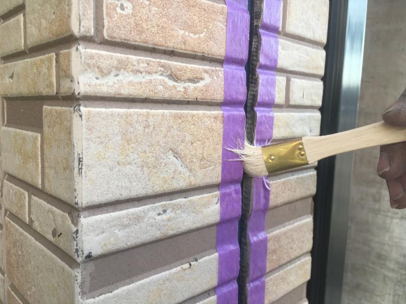 マスキングテープを貼ったら、プライマーを塗布します。プライマーとは、外壁材とコーキング材の密着性を高めるものです。