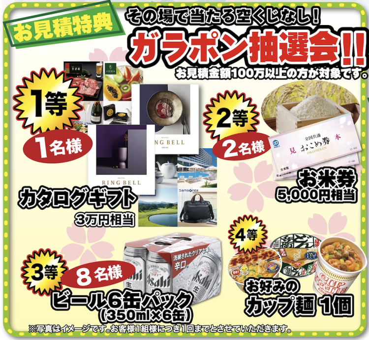 ※3月31日までに100万円以上の工事をご成約の方が対象となります。