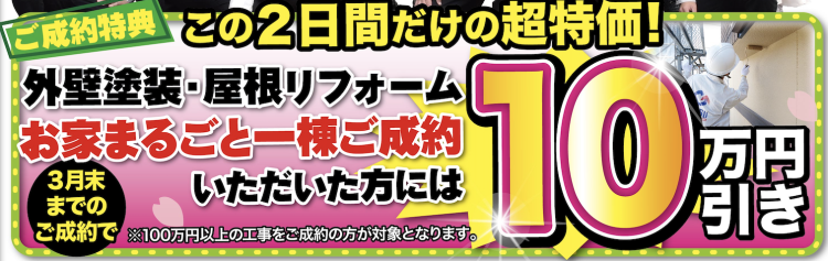 3月31日までにお家一棟まるごと外壁塗装をご成約の方