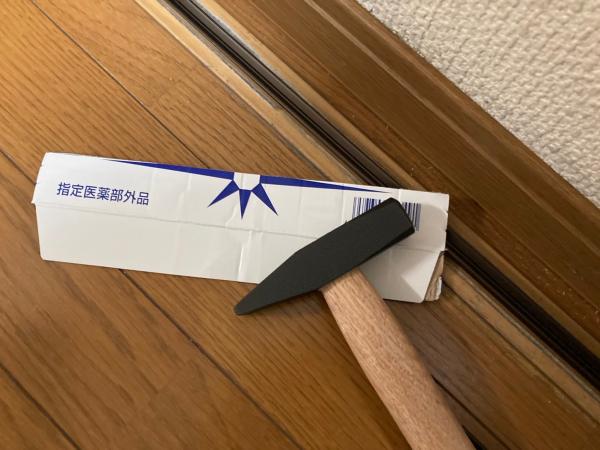 ゴムハンマーが無かったので、厚手の段ボールを折りたたんでハンマーで優しく打ち込めば