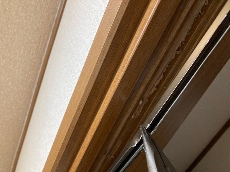 打ち込んだビスの頭をラジオペンチでつかんで、ゆっくりレールを引き抜きます。