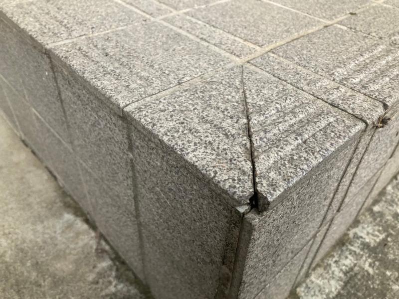 物が飛んできて、タイルが割れていました。