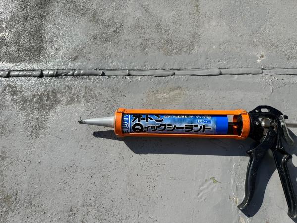 既存の防水層が紫外線などによりこのように傷み、ひび割れている状態では、その上に新しい防水層を作ることができません。その為、ひび割れはシーリングで補修をしたり、フラットな状態に下地を調整する作業を行います!