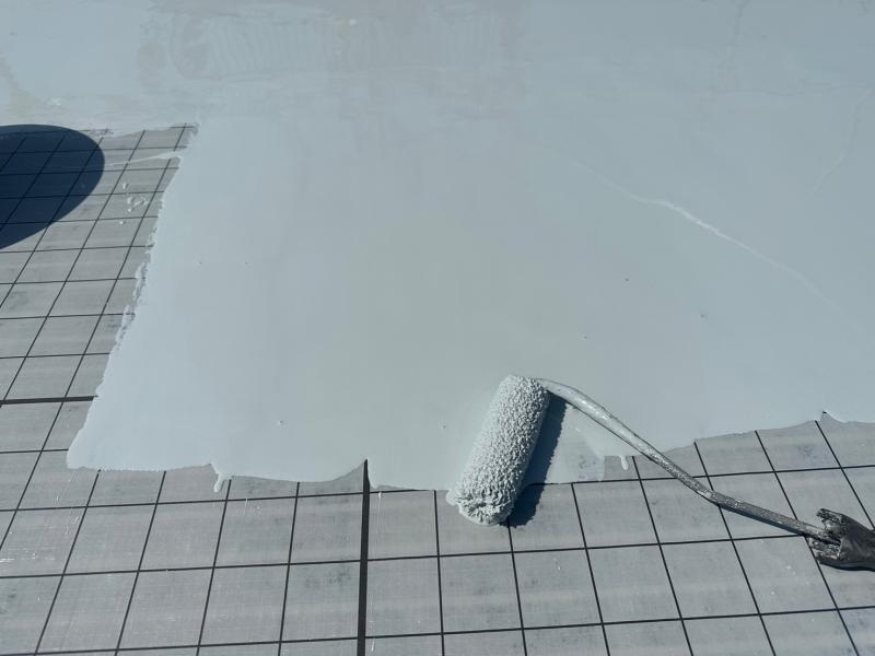 ウレタン防水層は、紫外線に弱いため、トップコートによる保護をします。