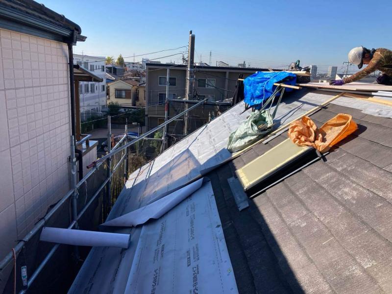天窓を撤去した箇所は下地を作成して、屋根の形を揃えます。